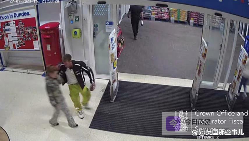(事发当天的监控录像截图,拍到两人离开一家超市)