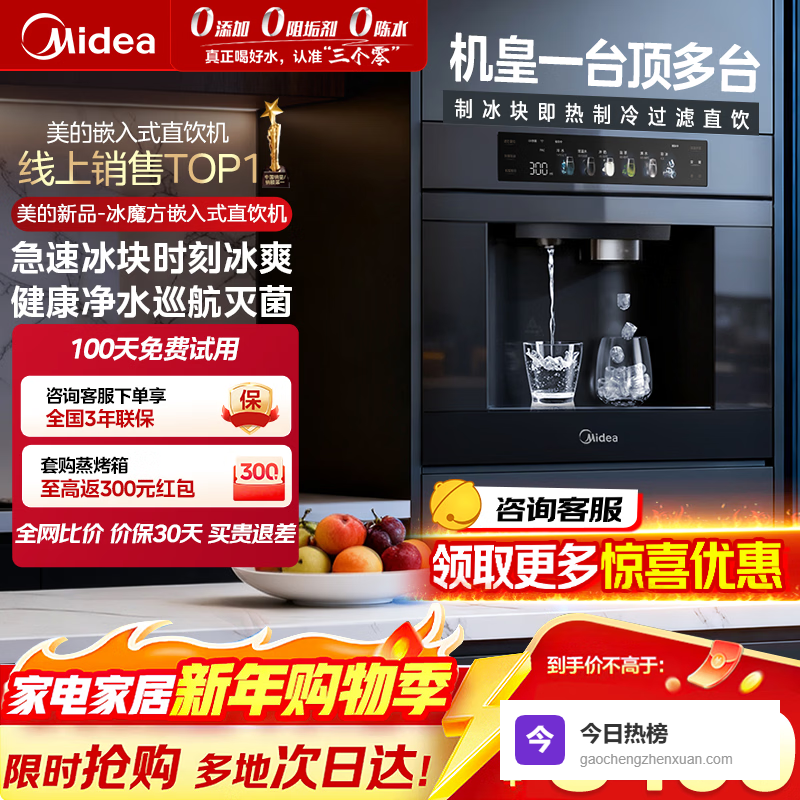 美的【新品冰魔方】配置卷王嵌入式直饮机净水器家用制冰块即热式制冷一体机RO反渗透净饮机¥