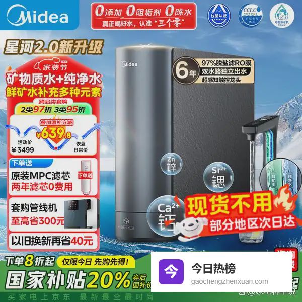 要说美的净水器怎么选,首先得看你家对水质有什么要求。如果家里对饮用水要求比较高,追求极致的纯净,那RO反渗透净水器肯定是不二之选。像美的星河1000G PRO,它有着超大的通量和长效滤芯,能满足全家人的用水需求,而且纯物理过滤,喝着也放心。当然,如果觉得纯净水少了点啥,想喝点带矿物质的,美的星河2.0净矿就挺不错的,它能保留水中的矿物质,口感更好,也更健康。所以,先想清楚自己想要啥,再结合预算,基本就能缩小选择范围啦!