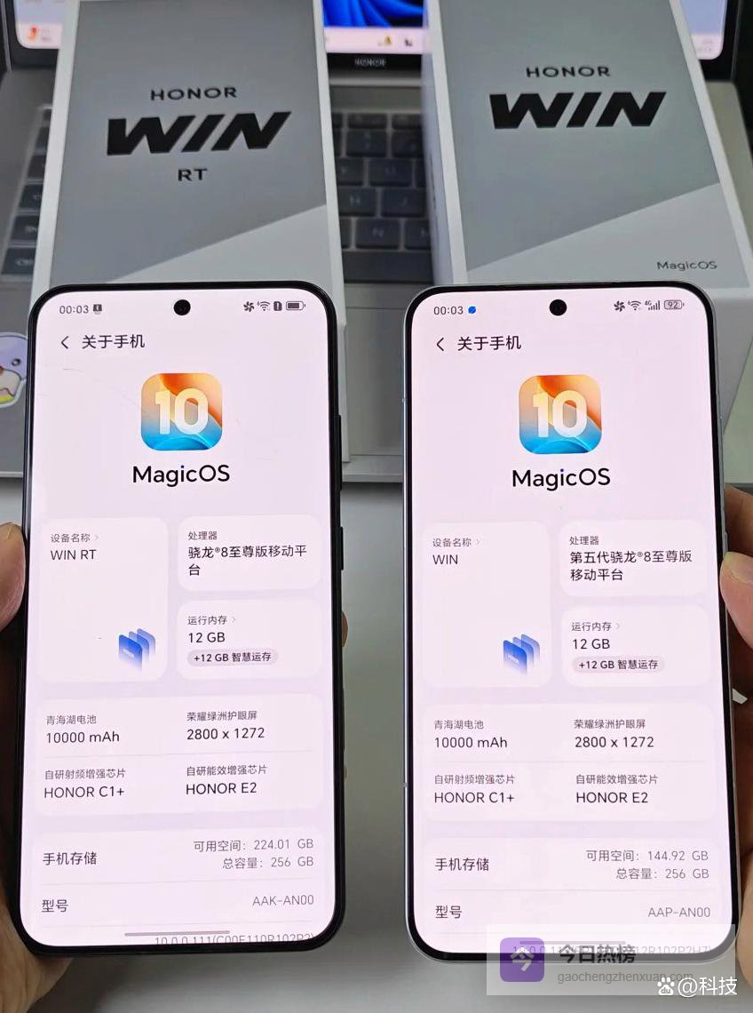 第二,荣耀WIN手机带来超强性能,荣耀WIN与标准旗舰荣耀WIN RT,分别搭载第五代骁龙8至尊版和骁龙8至尊版,性能方面呈现绝对领先之势。