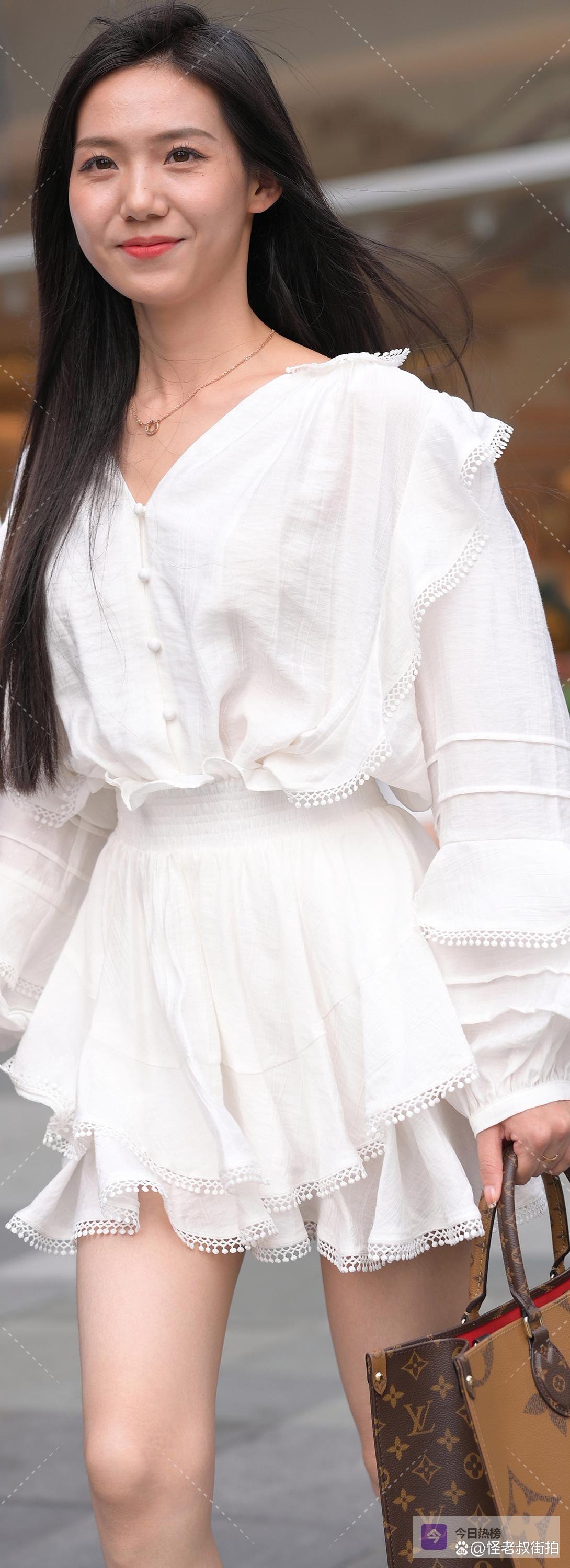 走在街上,看到有人穿一身白,总会不自觉地多看两眼。不是那种单调的白,而是带着设计感的白,像今天这位小姐姐,从上衣到短裤,再到脚上的透明鞋,整套装扮干净又高级,完全不会觉得单调。