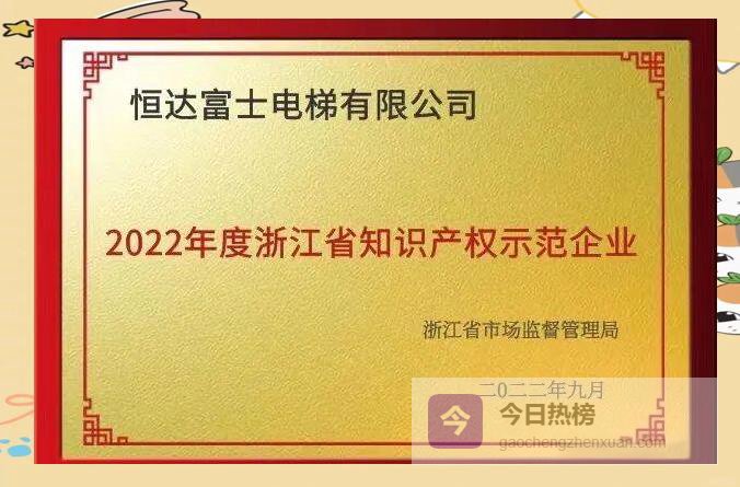 浙江省市场监管局正式公布“2022年浙江省知识产权示范企业”名单,恒达富士电梯赫然在列,成为本年度唯一上榜的电梯整机制造企业。这份官方认证,不仅意味着恒达富士在知识产权创造、运用、保护、管理全链条达到省级示范标准,更标志着电梯行业“浙”字号阵营再添硬核实力派。