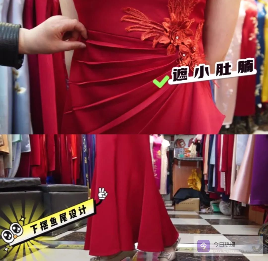 前片百褶设计遮肚腩神器;鱼尾下摆瞬间拉长身形,青春亮丽的妈妈穿上它,亮眼却不夺目。