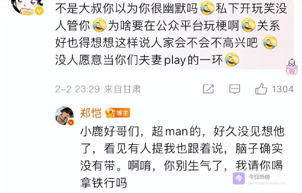 鹿晗粉丝为啥这么生气? 因为鹿晗这些年没少因为长相清秀被黑粉贴“娘炮”标签,这是他的痛点。 郑恺作为兄弟,不仅不避讳,还公开玩这种梗,简直是在伤口上撒盐。 郑恺的道歉更火上浇油,他凌晨回复说“小鹿好哥们,超man的! 脑子没带,请你喝拿铁行吗? ”网友直接骂翻了:这哪是道歉? 分明是继续抖机灵! 连句对苗苗的交代都没有,合着老婆就是个工具人?