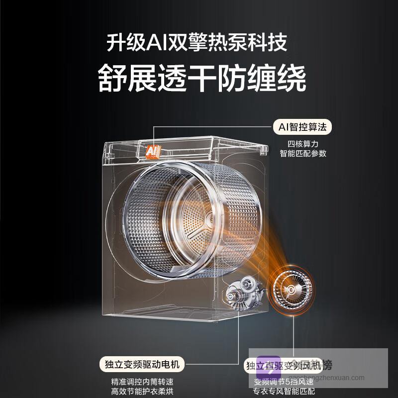 推荐理由:这款产品以其双擎热泵科技和3D透视烘干技术,能够高效、均匀地烘干各种衣物,特别适合追求品质生活的人士。