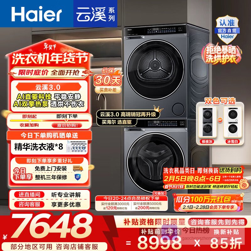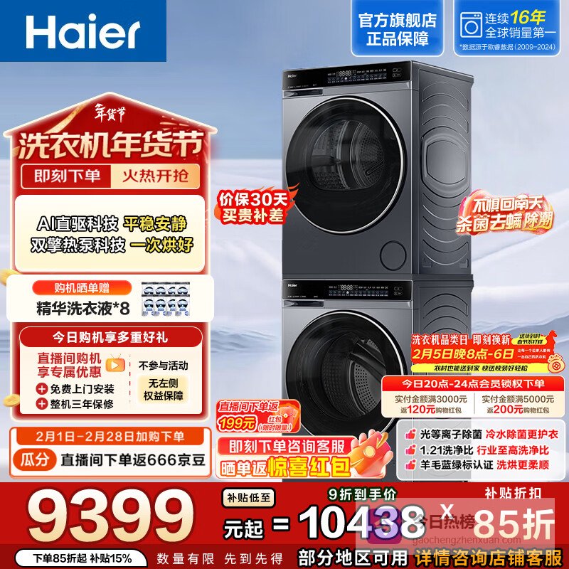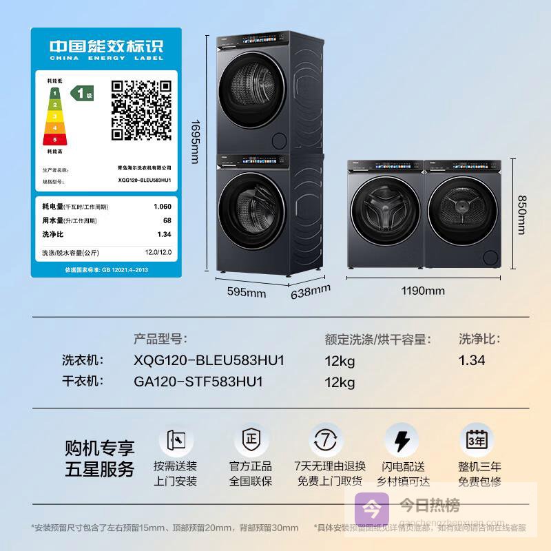 推荐理由:这款洗烘套装结合了智能科技与节能环保,能够高效解决家庭的洗衣烦恼,让每次洗衣都变得简单便捷。
