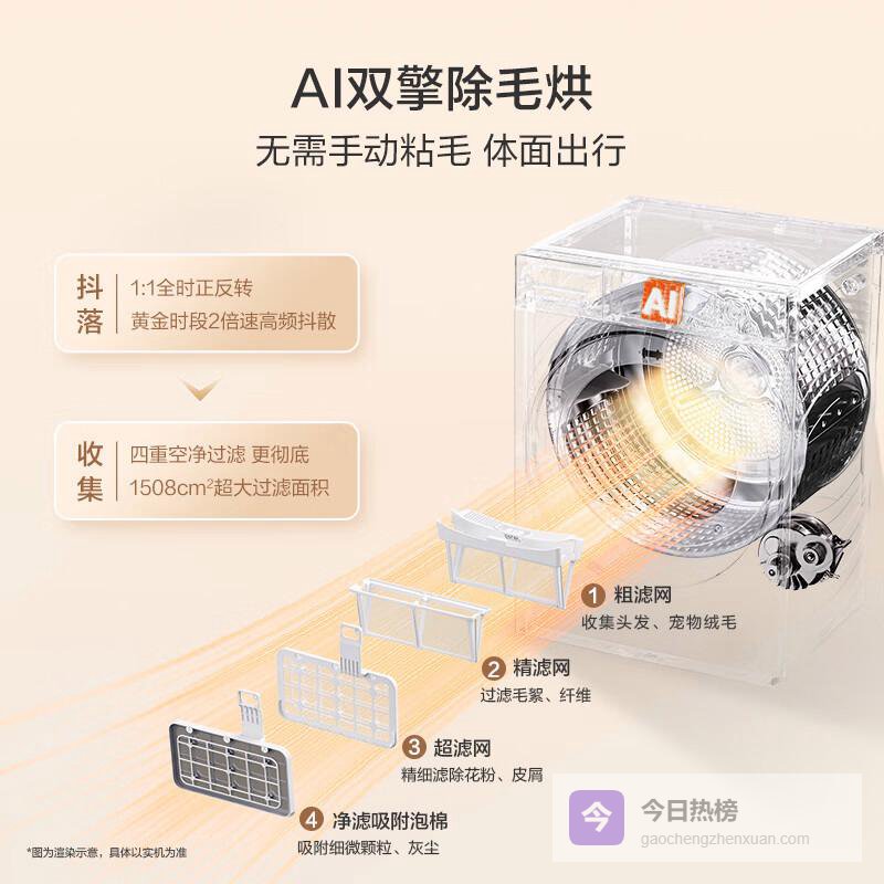 毛屑自清理:在烘干过程中自动过滤附着于衣物上的毛屑,保持呼吸环境的清新,适合养宠物家庭使用。