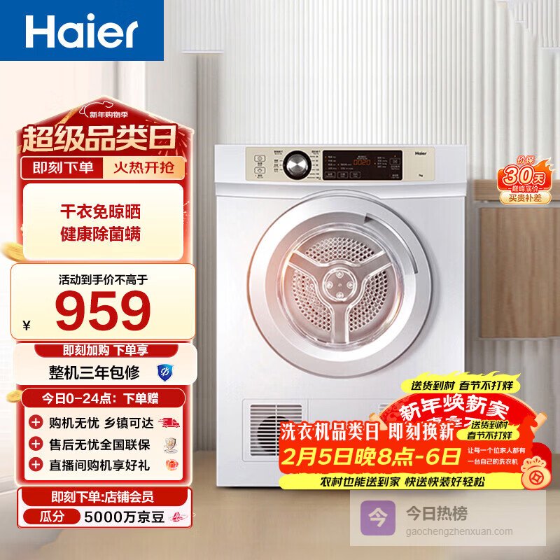 海尔烘干机哪个系列好,性价比高?第一款:海尔7公斤家用烘干机EGDZE7F