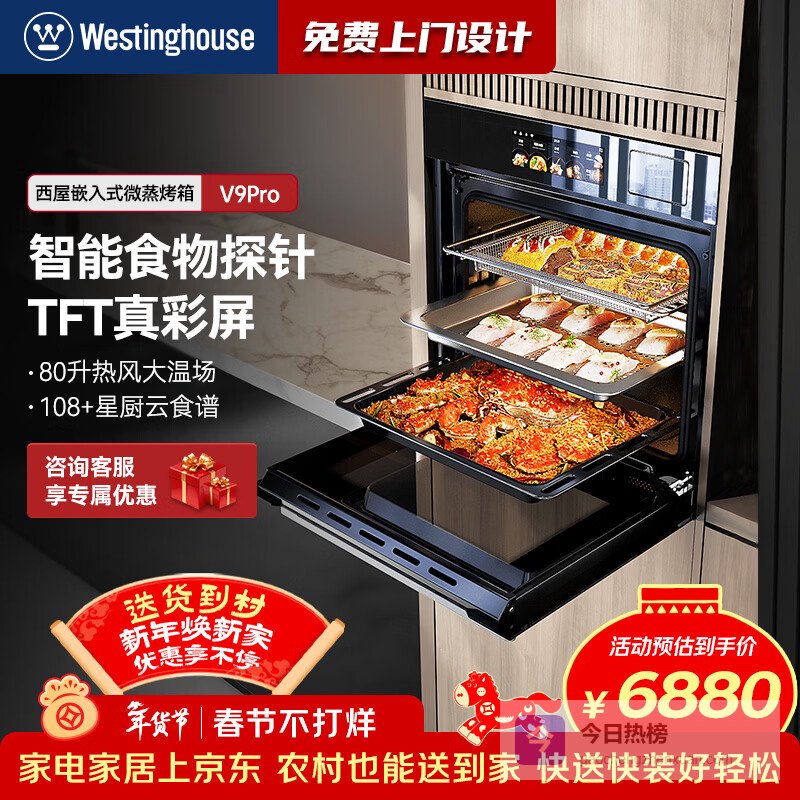 西屋(Westinghouse)蒸烤箱一体机嵌入式80L超大容量 家用蒸汽烤箱嵌入式独立控温蒸烤炸炖¥