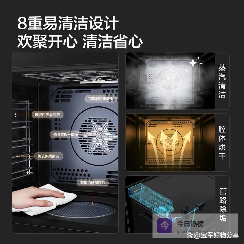 警惕“空气炸+酸奶+解冻”等花哨功能,核心蒸烤性能才是关键;建议:优先保证蒸汽和烘烤的基础体验。清洁难度被忽视: