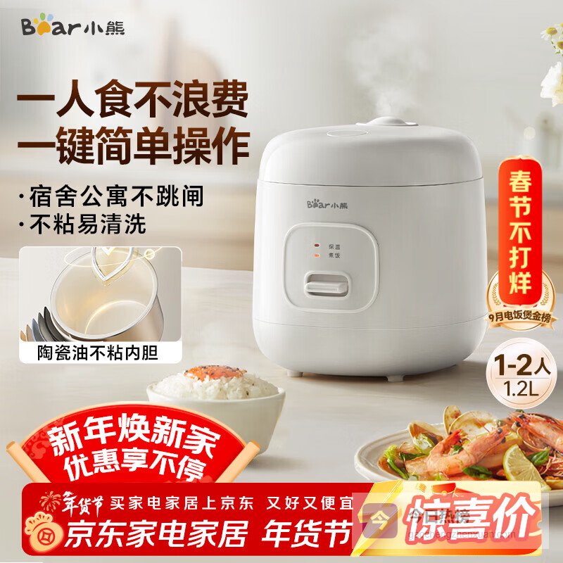 【京东自营】小熊电饭锅1-2人小电饭煲家用多功能宿舍小容量迷你煮饭煮泡面压力米饭锅1.2升DFB-F¥