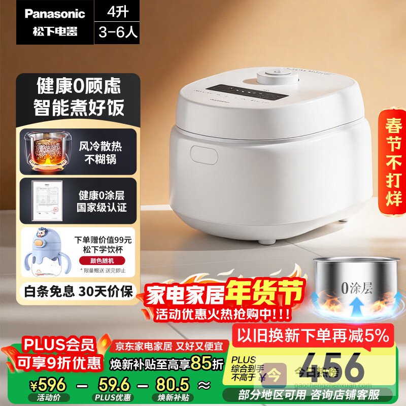 【京东自营】松下【国家补贴】Xtra零零煲青春版电饭煲0涂层4-5人家用无涂层电饭锅不锈钢内胆煮饭4¥