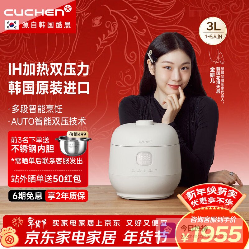 【京东自营】酷晨电饭煲韩国原装进口3升3-4人聪明煲小电饭锅不粘锅IH加热多功能1.9倍智能双压力T¥