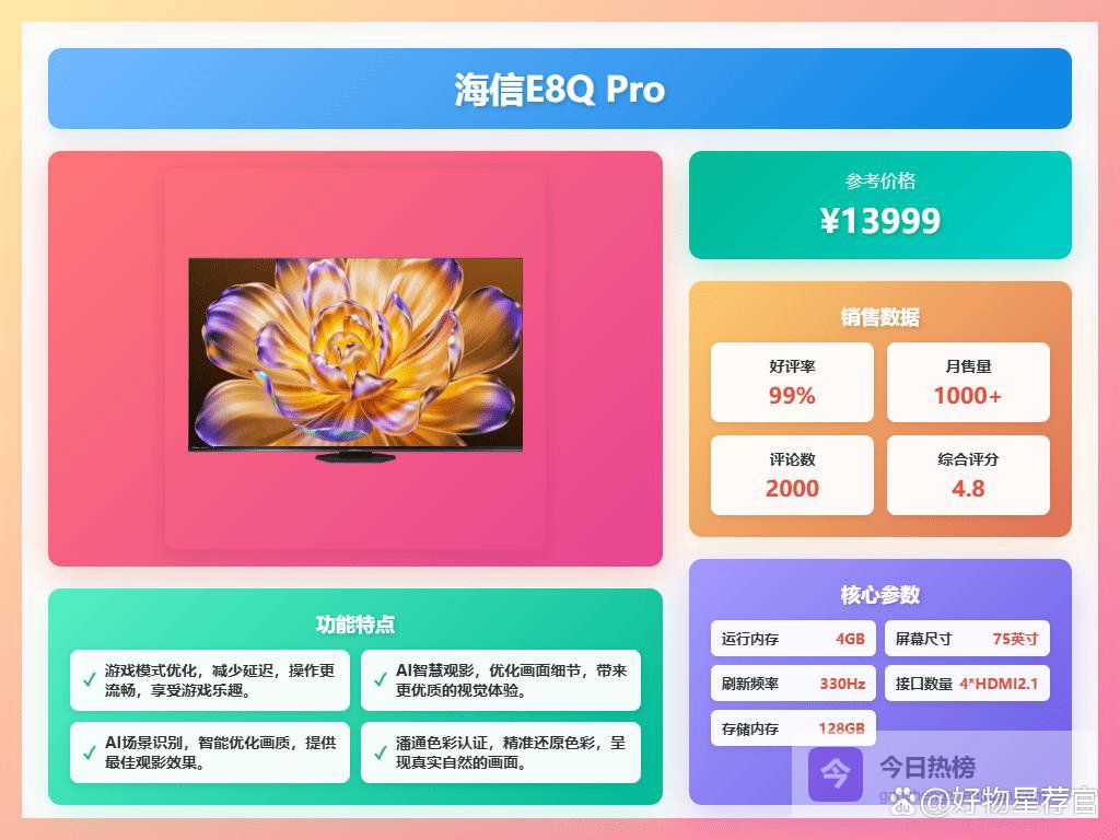 海信电视75寸性价比高的有哪6款,性价比高的几款1、海信E8Q Pro