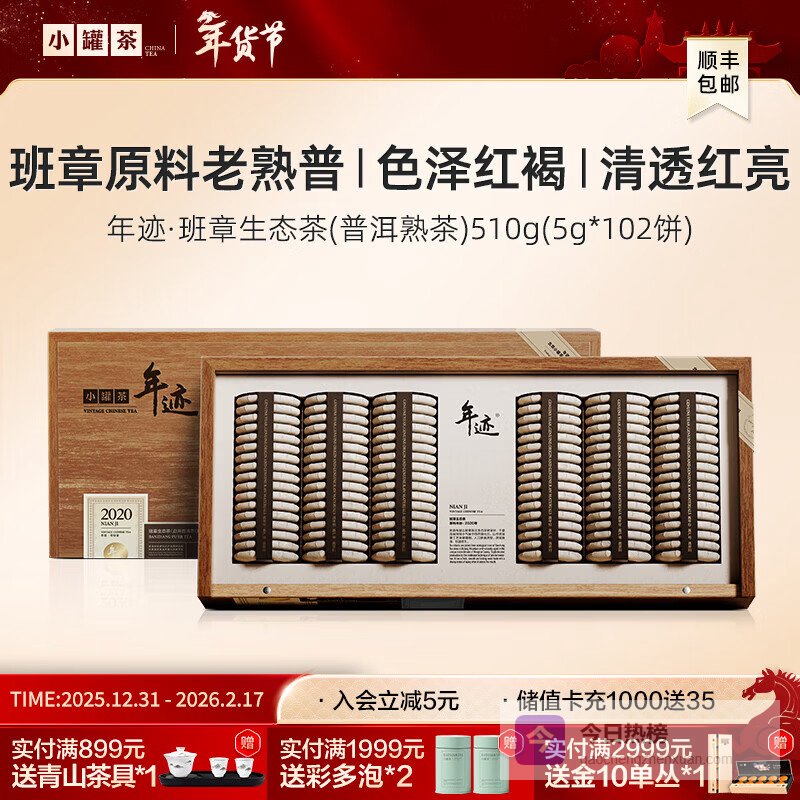 小罐茶出品 年迹班章普洱熟茶 生态茶原料 茶叶礼盒送长辈 2020班章生态茶-熟普510g¥