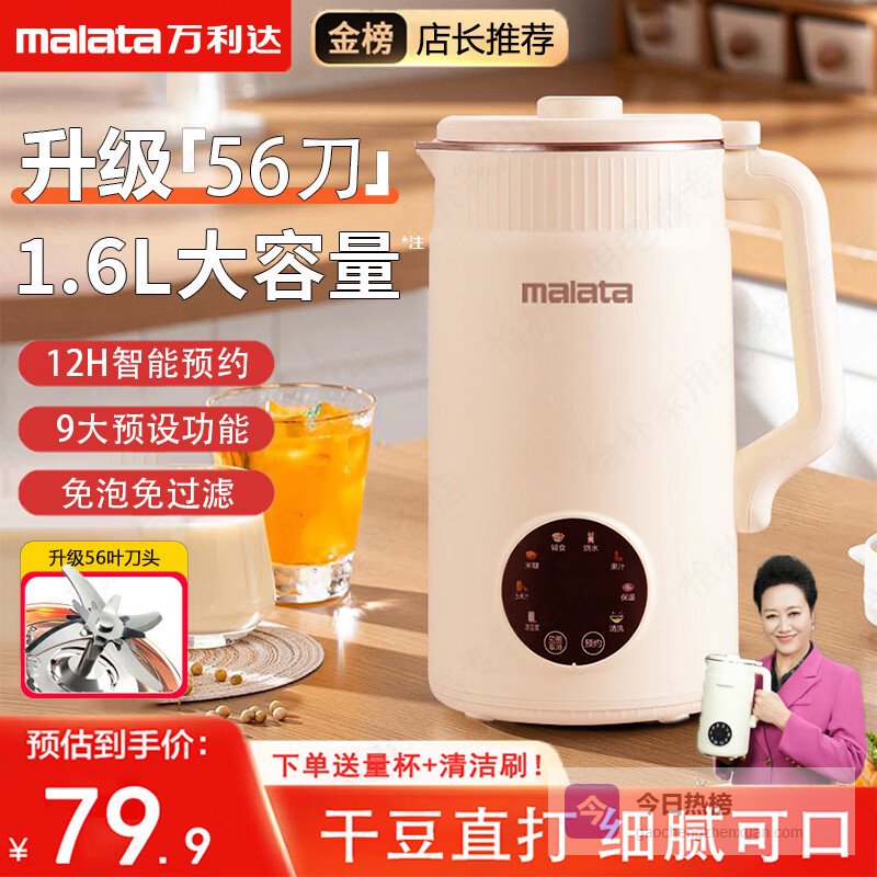 点评:这款摩兰德2025新款破壁机采用58叶金钛刀,强劲的破壁能力让食材处理得更细腻,打得更碎,营养更容易吸收。它的免滤细腻制浆功能,制作完直接喝,省去过滤步骤,吃起来口感顺滑,特别方便。升级的抑菌防糊底盘,不仅防止食材糊底,还能抑制细菌滋生,更健康用得放心。