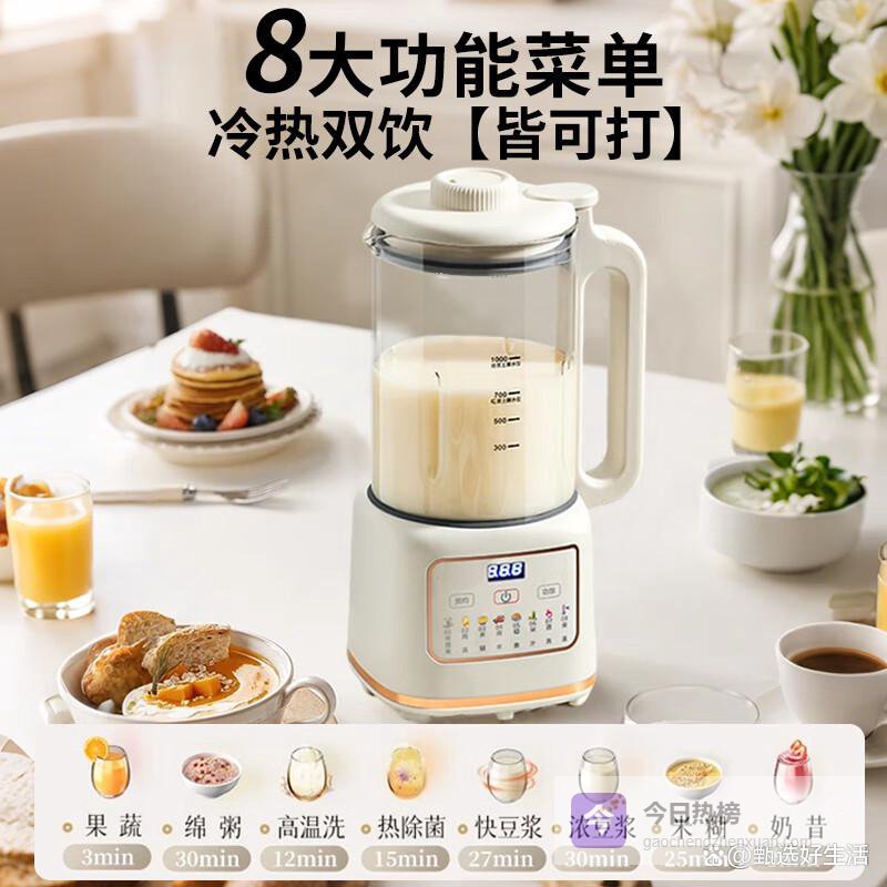 它具备多功能一体设计,不光能打豆浆,还能榨果汁、煮粥、焖汤,实用性还不错。全自动操作结合智能预约,早上起来就能喝到新鲜热腾腾的营养饮品,特别贴心。