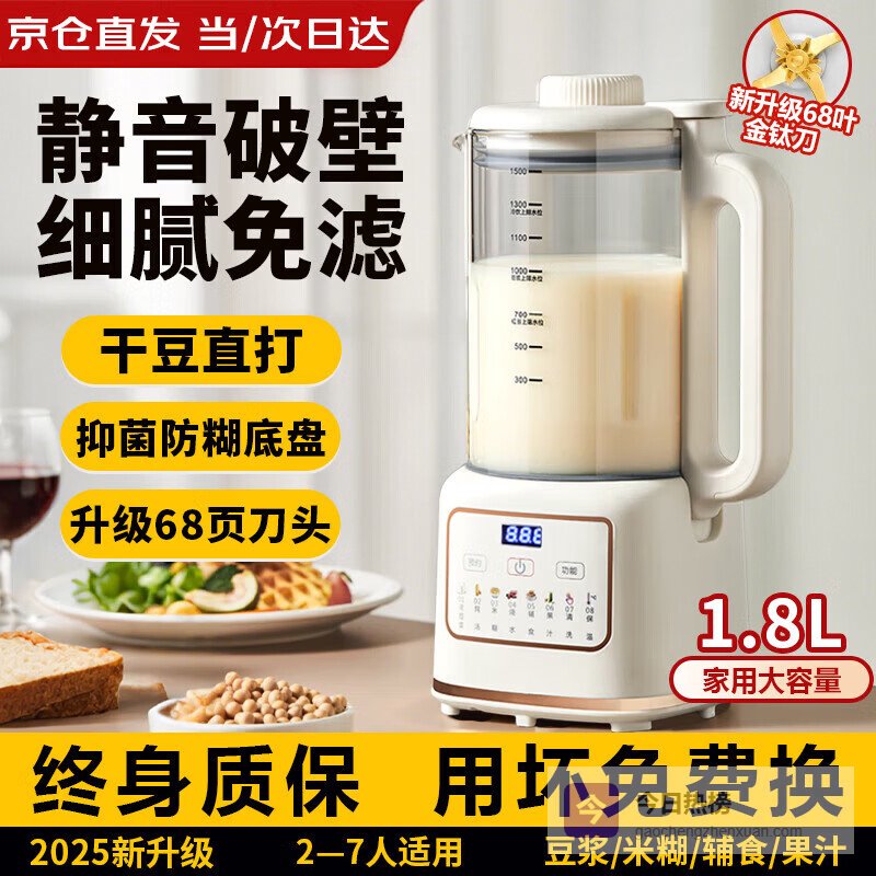 它的1.5L大容量设计,刚好适合1-4人小家庭,一次可以打出多份饮品,不用频繁操作,节省时间。破壁技术特别细腻,打出来的豆浆、果汁都丝滑顺口,不需要过滤,喝得更放心。还配备自清洗功能,清洁起来更轻松,省掉手洗的麻烦,让你用得更顺心。