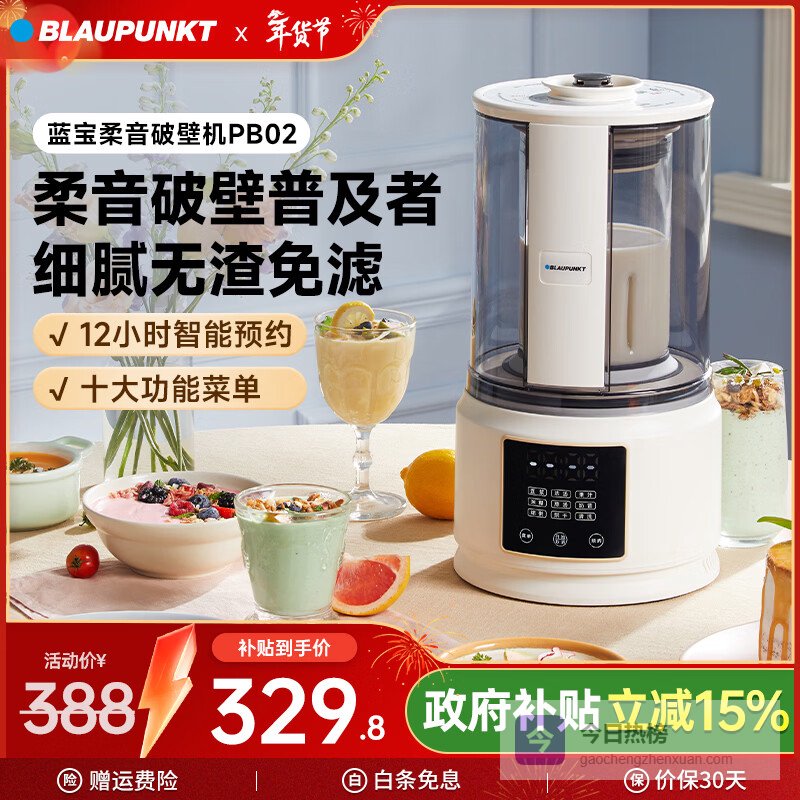 蓝宝(BLAUPUNKT)【全网热销】破壁机家用豆浆机全自动免煮3-4人大容量小型多功能自清洗榨汁机婴儿辅食机新年礼物 【经典款】PB02¥