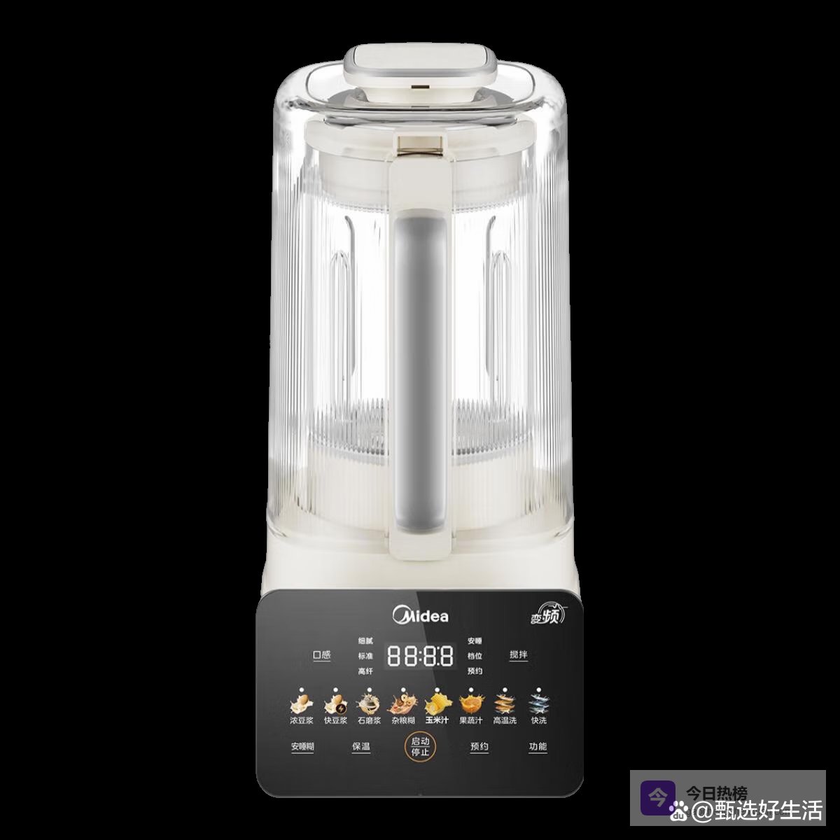 七、美的参数:全域0涂层技术、316L不锈钢底盘、304不锈钢上盖、高硼硅玻璃杯体、全拆洗设计,可拆卸刀头、自动自清洁功能