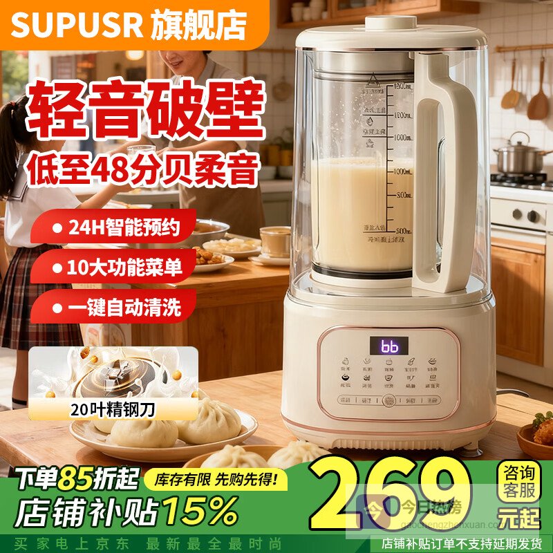 SUPUSR苏泊破壁机1.75L全自动免煮家用2025年新款自清洗豆浆机3-4人用榨汁多功能静音预约免手洗料理无渣 1.8L【防糊底盘+28叶刀】升级抗菌¥