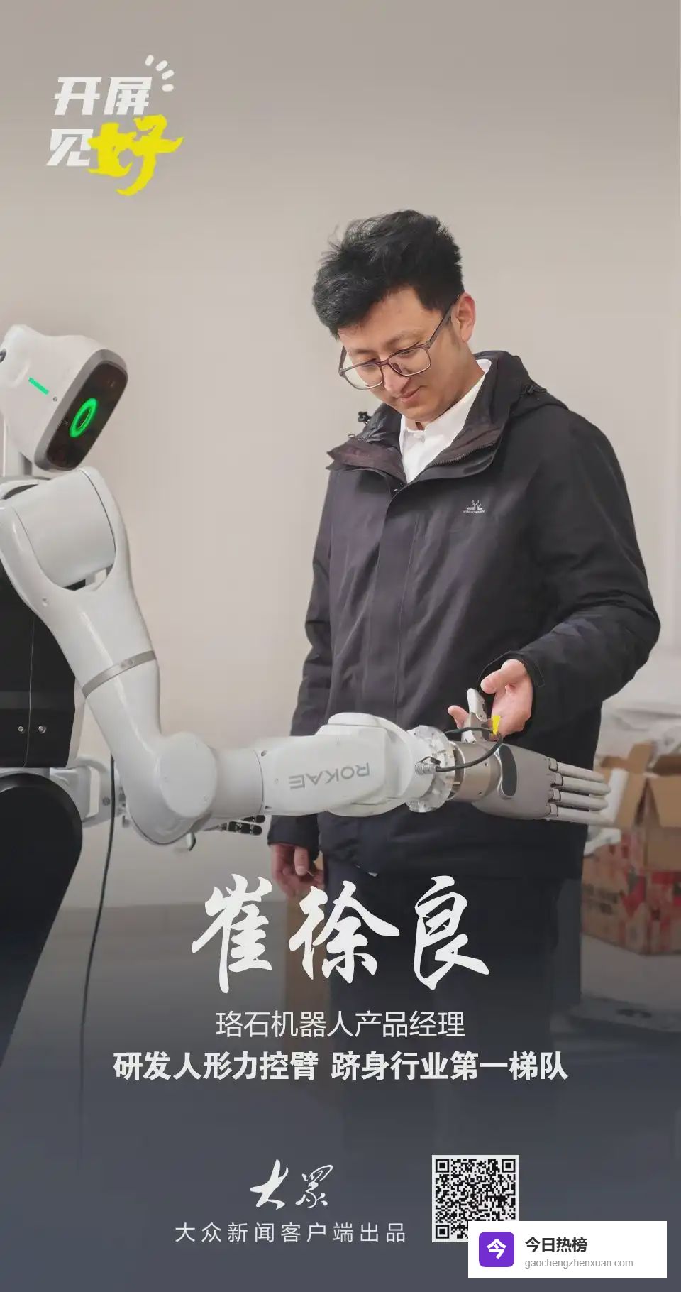 当“新质生产力”成为时代热词,你是否好奇,它究竟如何落地生长?《开屏见“好”》栏目推出“新质青年说”系列报道,带你走近一群正在一线“玩转”新技术的年轻人。他们用代码种田、用数据造桥、用创新突破“卡脖子”难题——新质生产力,正通过这些年轻的身影,变得具体、鲜活,触手可及。本期开屏见“好”,聚焦珞石(山东)机器人产品经理——崔徐良。