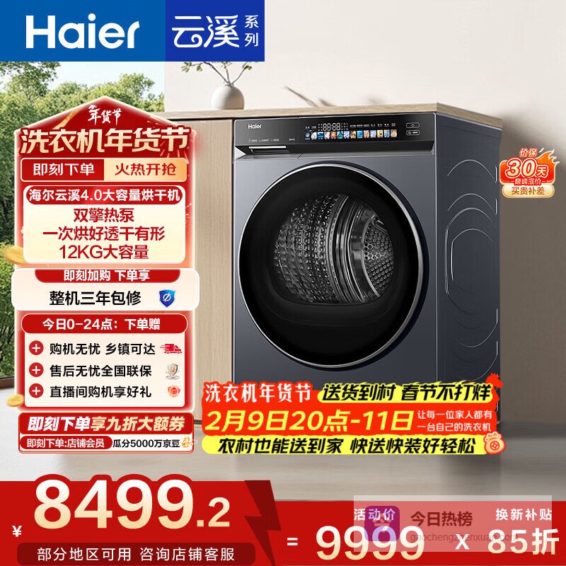 推荐入手:海尔云溪4.0热泵烘干机12KG