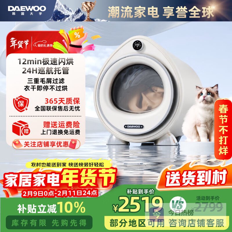 【品牌直营】大宇台式全自动滚筒烘干机3KG干衣机迷你小型婴幼儿童衣物烘干杀菌消毒内衣内裤袜子大容量烘¥