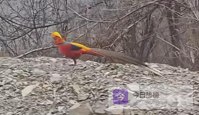 她拍摄的视频有点糊,更多的细节就看不到了,但是就目前能看到的这些特征就足够分辨物种了,这家伙是被列入国家重点保护野生动物名录(2021年)的国家二级保护动物——红腹锦鸡(Chrysolophus pictus)。