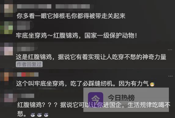 网友们似乎都认识红腹锦鸡,评论区满满都是关于保护动物的那些常见的梗,比如“它有让人吃喝不愁的神奇力量”、“吃了必踩缝纫机”、“多看一眼,它掉根毛你都得被带走关起来”之类的,总之就是伤害保护动物会被判刑。