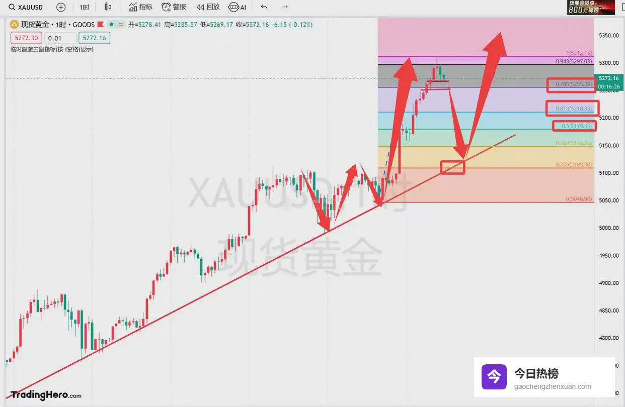 最近的黄金多多少少有点毛病,总在凌晨两点半之后有大波动,想参与都难,昨天还是5100突破不了,我们看下跌,5100突破历史新高看5300,今天就到了,但是到归到了,谁知道晚上偷偷摸摸涨呀,完全没有任何机会参与,那今天还有个美联储利率决议,放心,我今天倒是要看看你怎么个事?