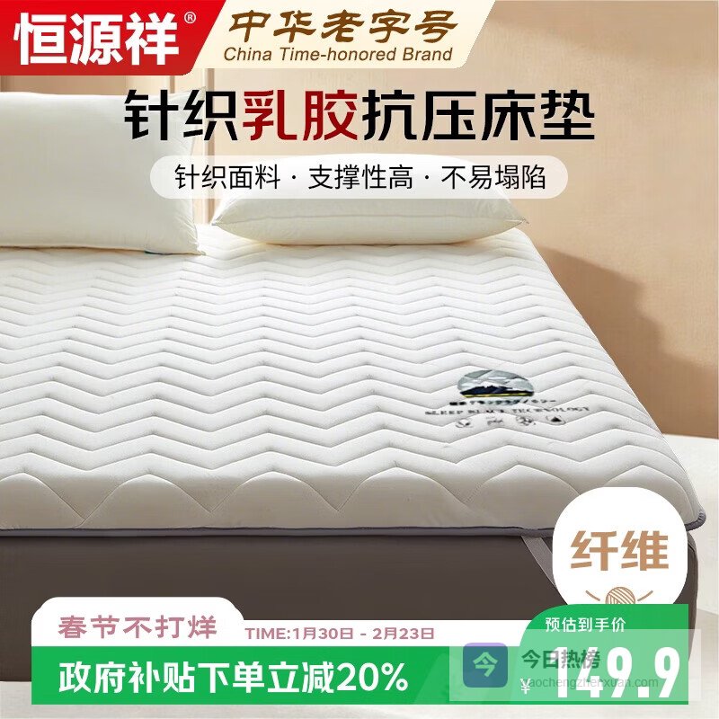 恒源祥床上用品乳胶床垫1.5米床软垫子抗菌床褥子双人可折叠 150*200cm¥