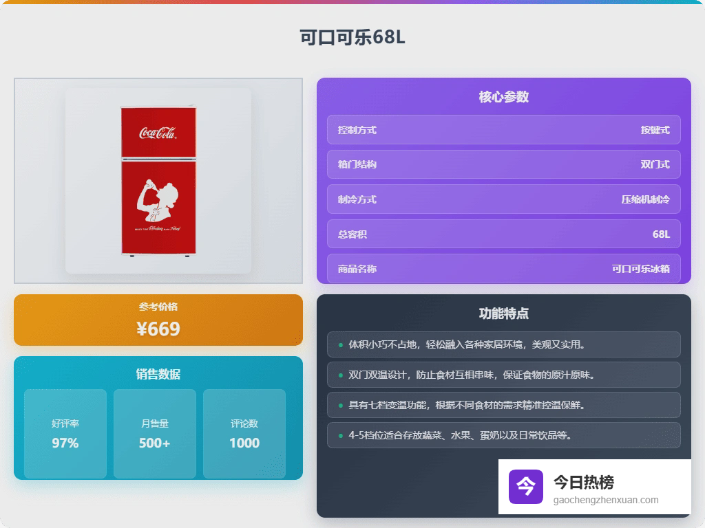 可口可乐车载冰箱质量怎么样,推荐好用实惠性价比高型号1、可口可乐68L双开门