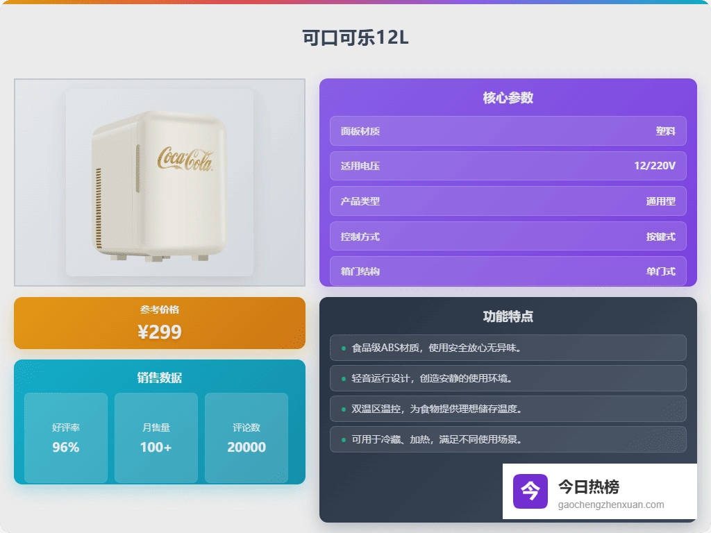 1️⃣ 多场景使用:这款可口可乐TJ-8车载冰箱支持家用和车载两种场景,电压范围广泛,12V和220V都能用,还挺方便的。无论是在宿舍还是在车上,都可以轻松带着走,不用担心电源问题。