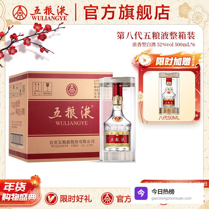 八代五粮液 五粮液【限时直降】第八代五粮液 普五八代 浓香型白酒 52度 500mL 6瓶 (原箱)¥