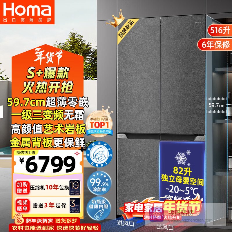 推荐第4款:奥马Homa 516升超薄冰箱6000元左右冰箱