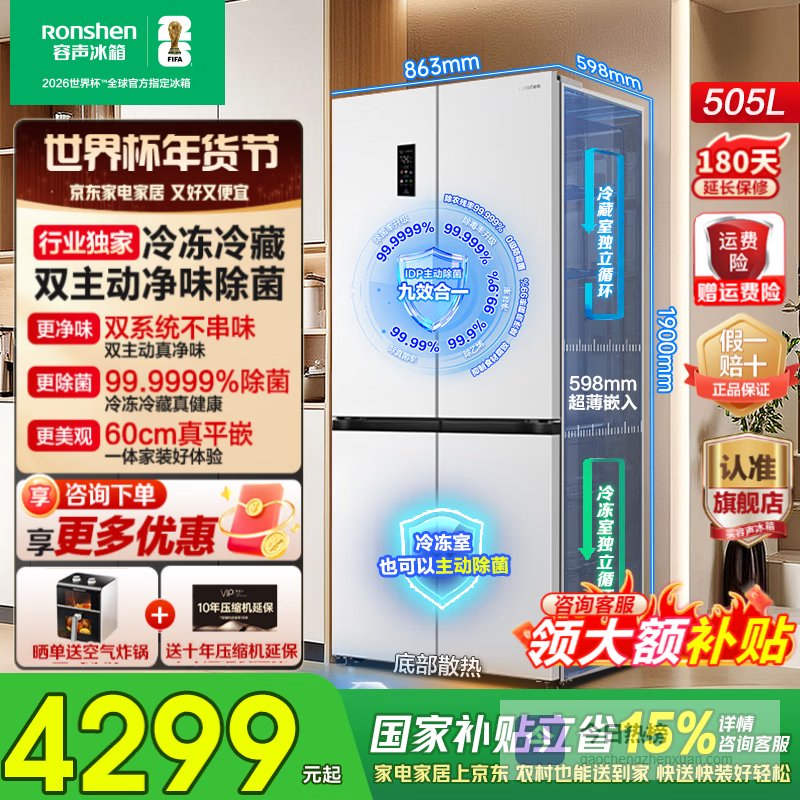 容声方糖505L双开四开十字门双系统循环IDP主动除菌净味超薄零嵌入式一级能效白冰箱国家补贴世界杯 【容声方糖】505L双净双系统白¥