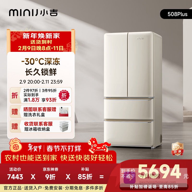 小吉(MINIJ)复古508L法式多门冰箱除菌干湿分储变温低噪一级能效风冷大容量奶酪白BCD-JF508WB PLUS国家补贴¥
