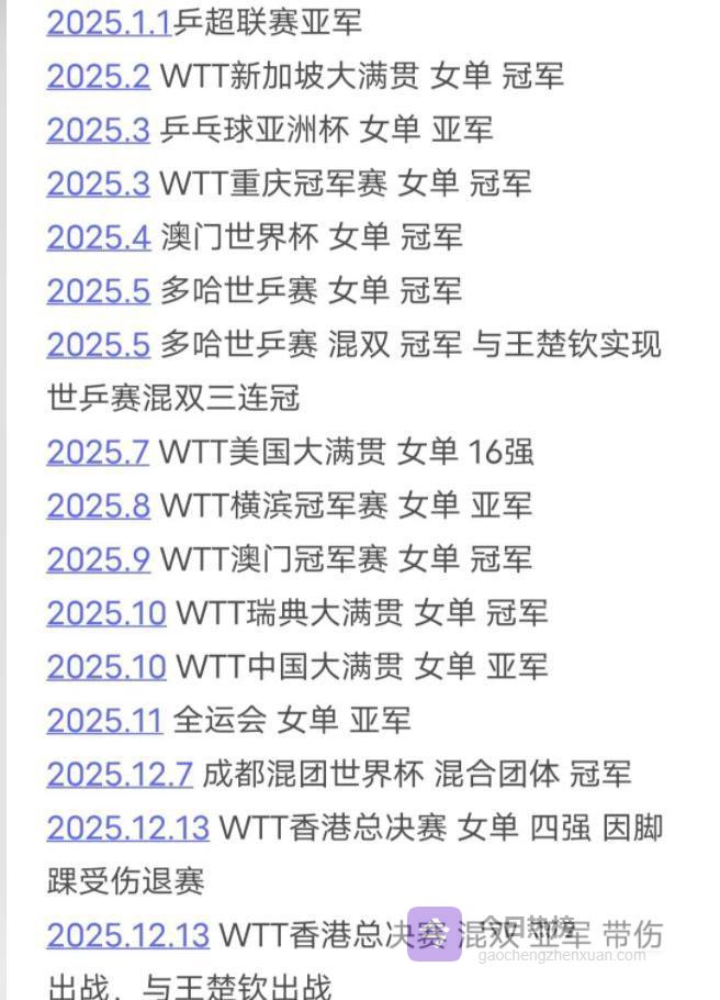 孙颖莎去年比赛安排得太密集,几乎没怎么休息,直到六月才缓过来,香港总决赛时她脚伤发作,单打只能退出,但混双还是坚持上场,最后拿了银牌,之后她就没有参加乒超和多哈冠军赛,王楚钦的情况更严重,腰伤让他退出了香港总决赛男单和多哈的比赛,他一缺席,男队立刻显得吃力,多哈那次男单四强里只有林诗栋一个人晋级,外协会有两位选手进入四强,张本智和在比赛中一度以2比1领先王楚钦,要不是后来局面逆转,结果可能会更不理想,2025年男队获得的七个单打冠军中,有六个是王楚钦拿到的,他一停赛,队伍就明显缺人。
