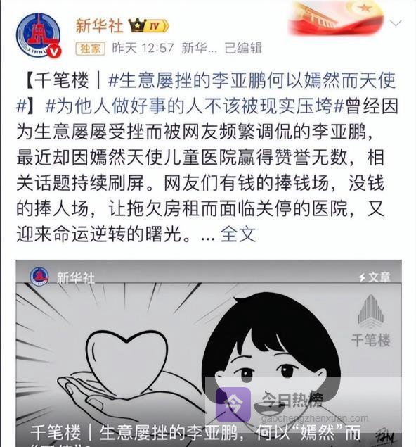 现如今的李亚鹏,不仅成功让嫣然儿童医院挺过难关,品德也得到了大家的认可。海哈金喜的评论区,经常有人在喊他俩复婚呢。