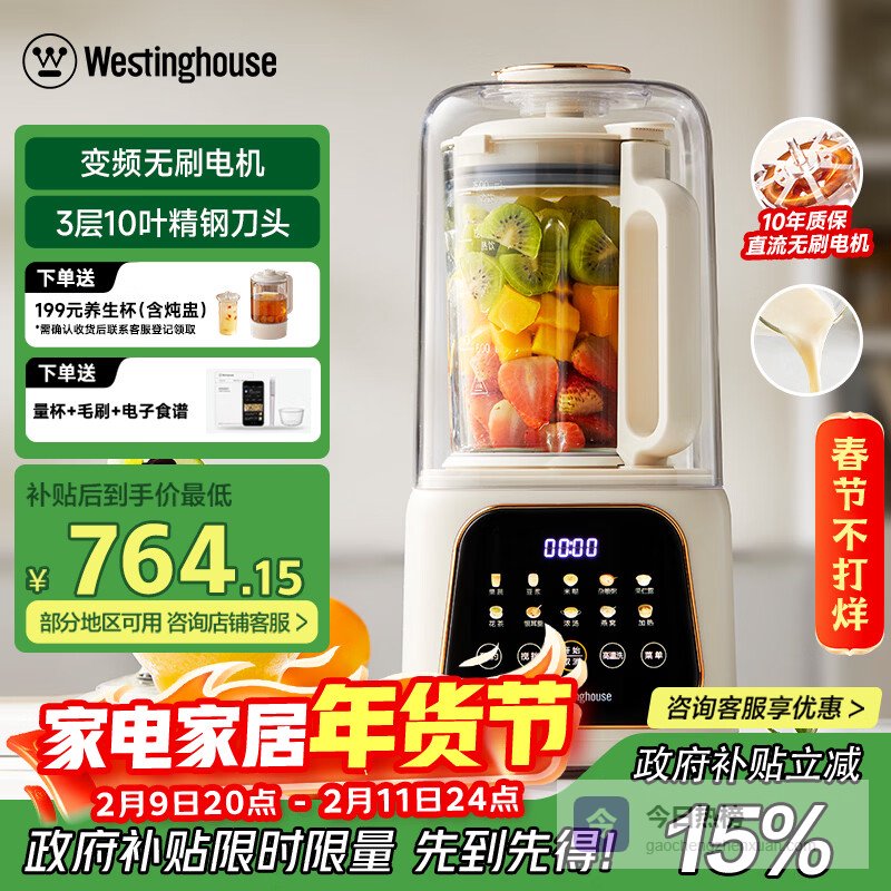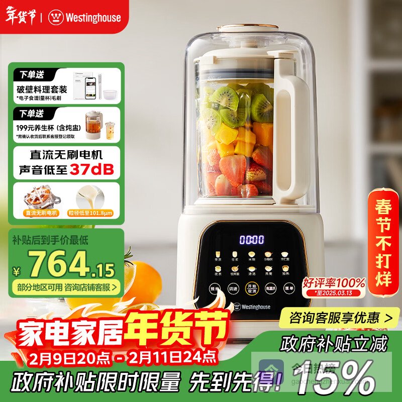第2款:西屋WPB15J21-W▶ BLDC无刷电机:这破壁机用的是无刷电机,这种电机的好处就是寿命长,而且运行起来声音也更柔和,不像传统电机那样吵,用个几年基本没啥问题。