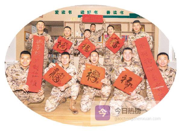 ▲官兵们手持春联合影留念。