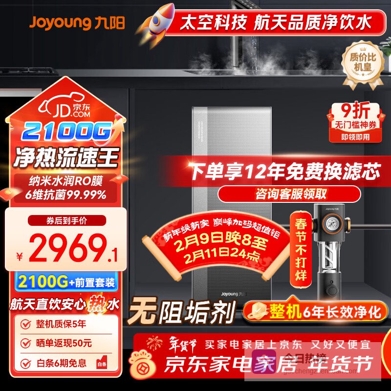 九阳(Joyoung)加热净水器天净400G通量2100G温热水流速5.5L/min R1001+前置¥