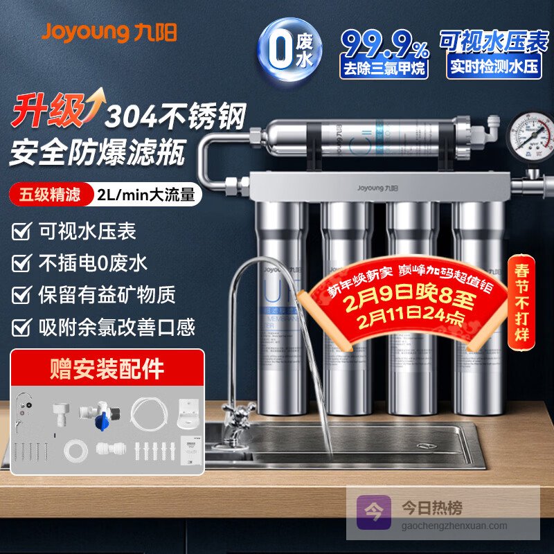 九阳(Joyoung)净水器家用直饮厨房自来水过滤器不锈钢超滤净水机JYW-RC530¥