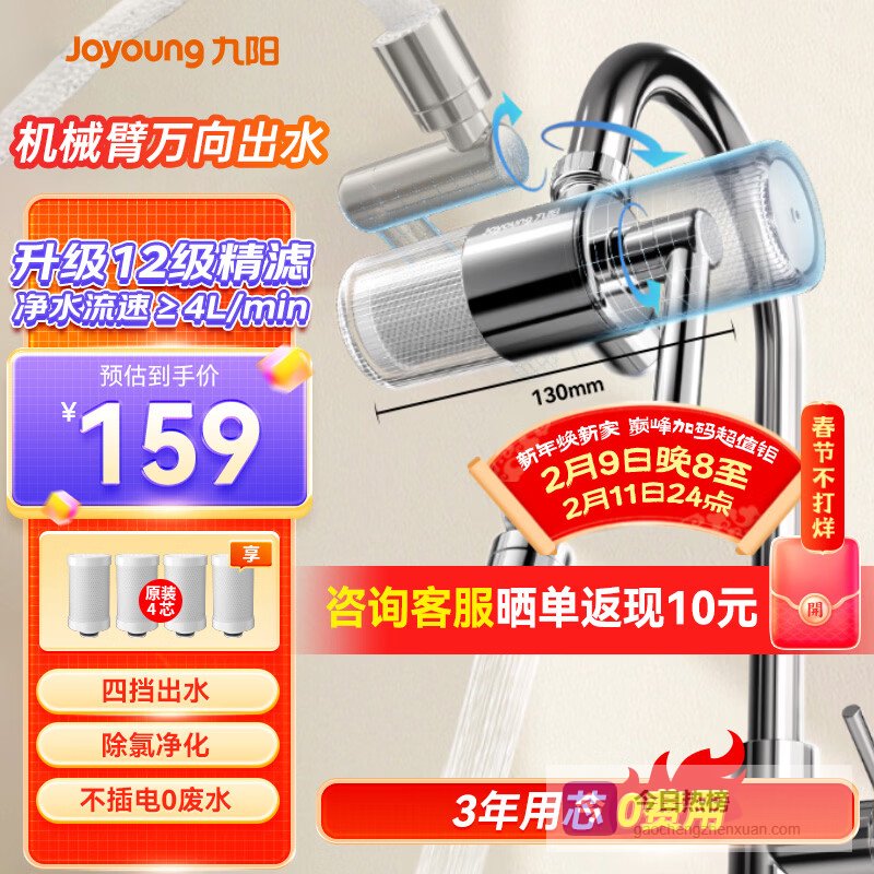九阳(Joyoung)龙头净水器机械臂万向出水净水龙头大流速一机四芯厨卫两用RT55¥
