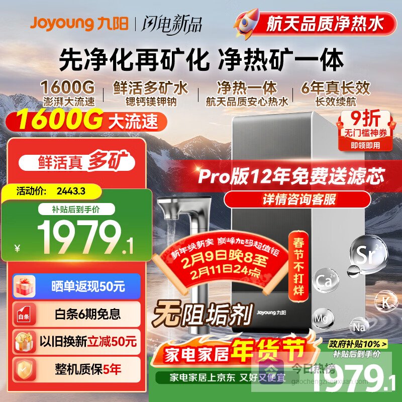 九阳(Joyoung)加热净水器天净130G通量1600G富锶多种矿物质温热水流速4L/min¥