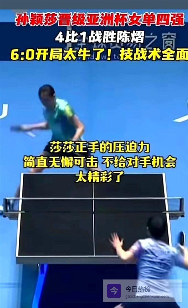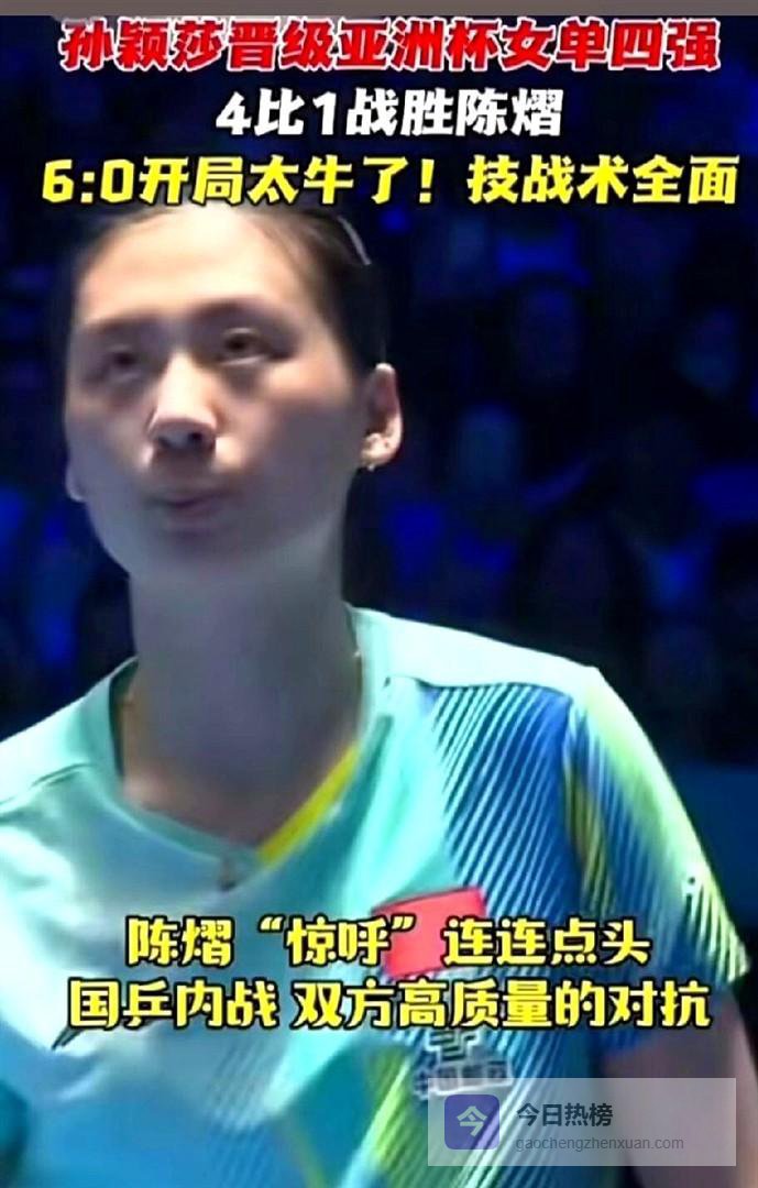 比赛结束了。 比分牌定格在4比1,孙颖莎战胜了队友陈熠,晋级下一轮。 过程远非最终结果看起来这般波澜不惊,尤其是第五局,陈熠一度将比分拉开,场馆内的空气几乎凝固,仿佛一场惊天逆转即将上演。 但结局的走向,出人意料,又在情理之中,它清晰地呈现了孙颖莎作为顶尖运动员的另一面。