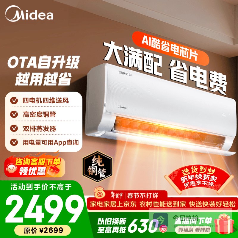美的空调 大1匹/1.5匹 酷省电 新一级能效 变频冷暖自清洁 家用卧室空调挂机 家电国家补贴 以旧换新 酷省电 青春版 大1.5匹 省电25%¥