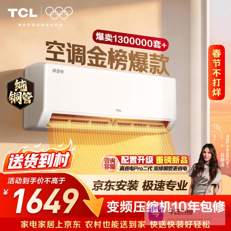 TCL空调京东联名真省电SE大1.5匹新一级能效变频纯铜管挂机冷暖壁挂式卧室KFR-35GW/JD21+B1国家补贴¥