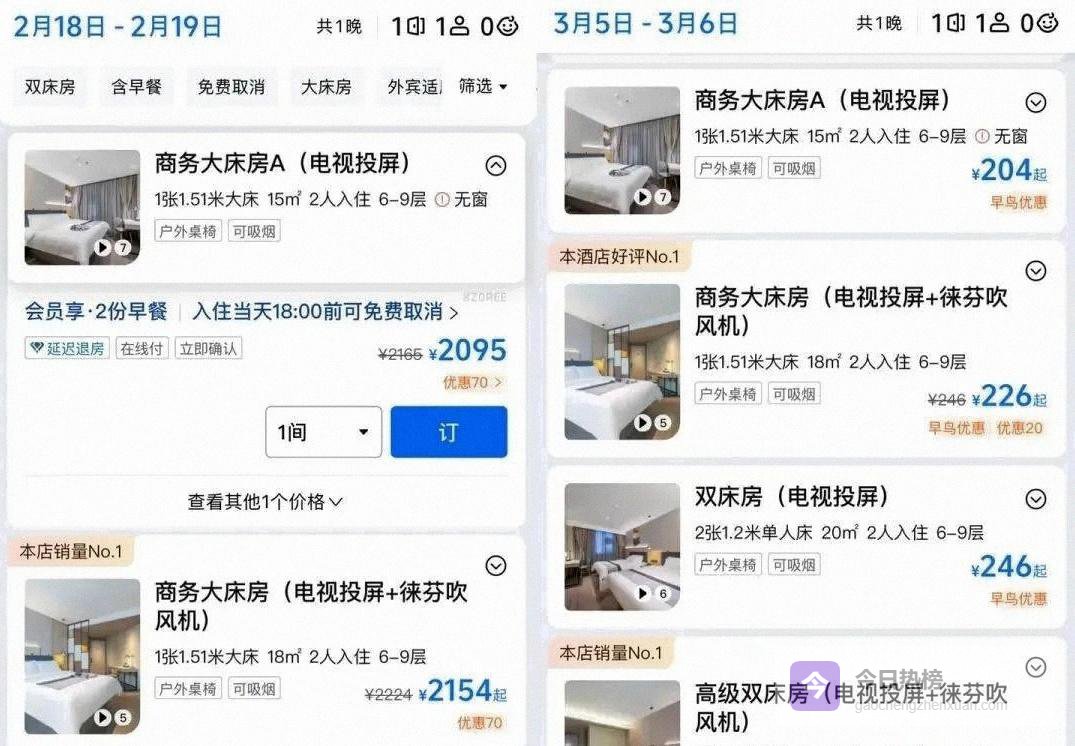平日两三百的经济型酒店,突然要一千多两千,心理落差比房价更高